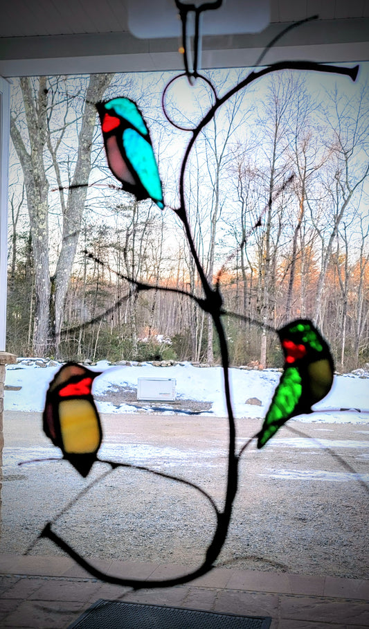 Stained-Glass Suncatcher- Male and Female Cardinals on a branch
